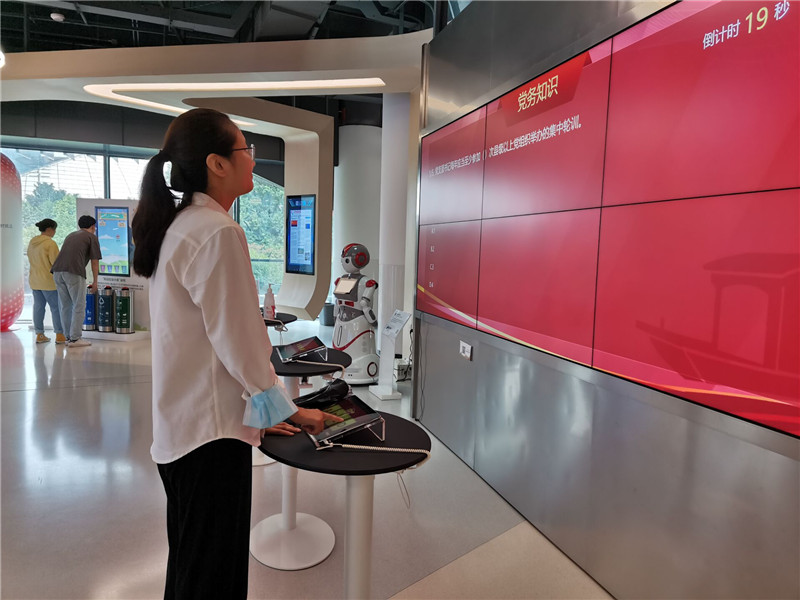 在杭州市黨群服務(wù)中心,杭建人一直認(rèn)真聽、仔細(xì)看、詳細(xì)問、扎實(shí)記,還積極主動開始了黨的問答,認(rèn)真查詢黨的資料,我們在交流中凝聚共識,因為我們是接班人!